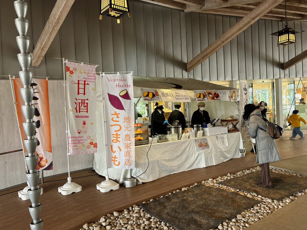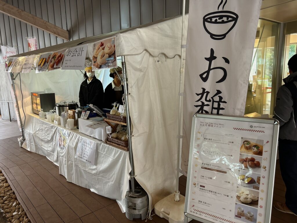 カフェの外には、甘酒やお雑煮などの出店もあり、いつも以上に賑わっていました。